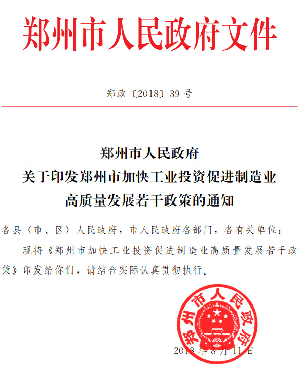 政府在不斷督導(dǎo)企業(yè)進(jìn)行改造升級的過程,也在不斷為企業(yè)考慮,出臺補(bǔ)貼政策。8月份,鄭州市出臺了加快工業(yè)投資促進(jìn)制造業(yè)高質(zhì)量發(fā)展若干政策