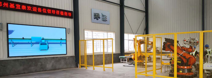 目前已研發(fā)定型耐火材料自動(dòng)化設(shè)備自動(dòng)稱重布料機(jī)、數(shù)控壓力機(jī)、智能取磚、智能接磚、智能輸送、在線檢測、自動(dòng)翻磚、碼垛機(jī)器人等,以及不定形袋裝材料的搬運(yùn)、碼垛。